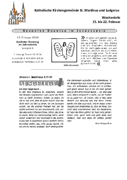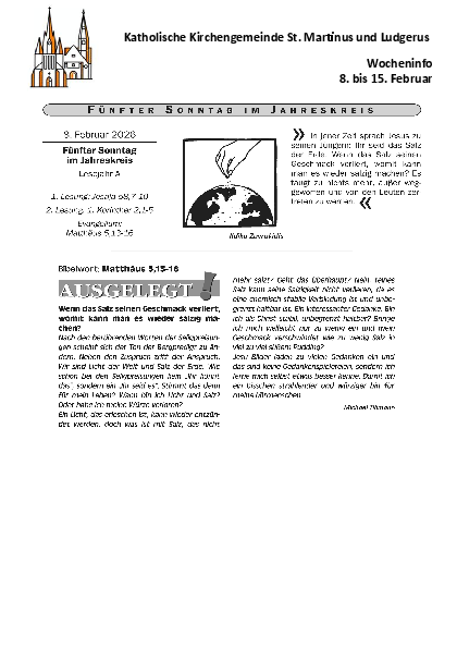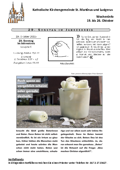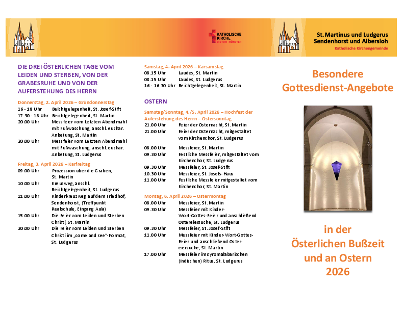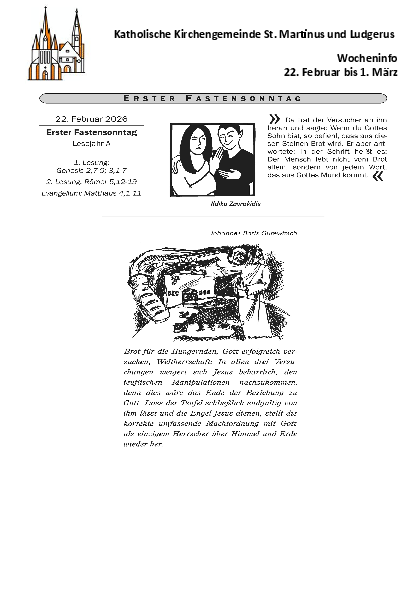 Der Livestream vom Gottesdienst (sonntags um 9.30 Uhr aus St. Ludgerus und um 11 Uhr aus St. Martin) wird an dieser Stelle eine 1/4 Stunde vor dem Gottesdienstbeginn hier sichtbar.