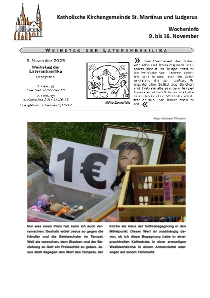 An Allerheiligen werden die zwei Gottesdienste um 9.30 Uhr und 11 Uhr gestreamt. Der Livestream wird am Sonntag, 02. November aus St. Martin aufgrund der Rundfunkübertragung um 10 Uhr übertragen und aus St. Ludgerus wie gewohnt um 9.30 Uhr.