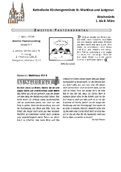 Am Mittwoch, 4. März, laden wir um 19.00 Uhr wieder herzlich zu „Adoration“ in St. Martin ein, d. h. zu einer besonderen Anbetungsstunde, die vom…