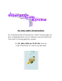 Der Autor erzählt von Momenten, die uns für immer verändern. Eingebunden werden Textabschnitte in einen Wortgottesdienst mit Liedern, Bibeltext und Gebeten. Das Team des Arbeitskreises Glauben im Alltag lädt herzlich dazu ein, um 19.00h für etwa eine Stunde in die St. Martin-Kirche in Sendenhorst zu kommen!